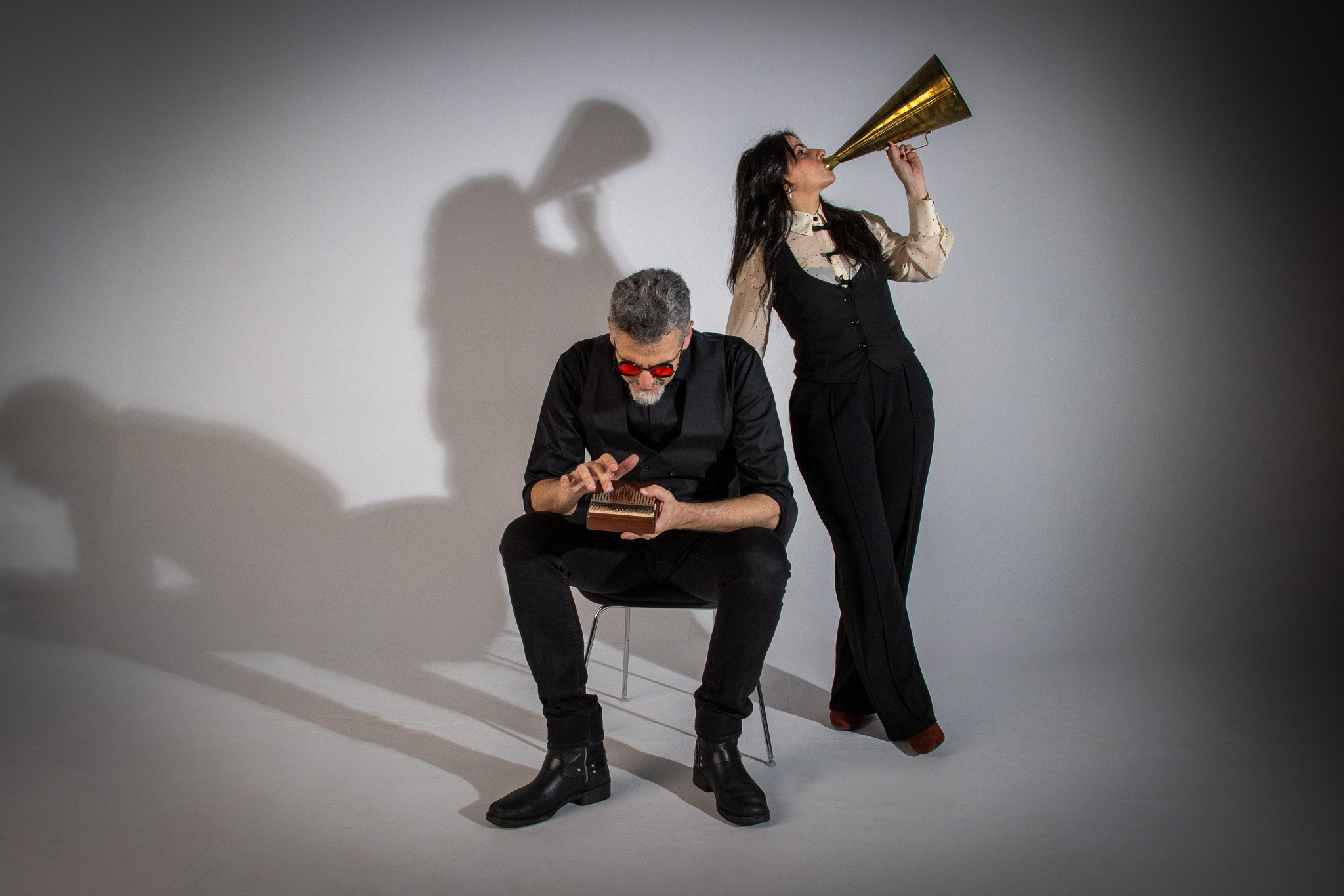 Esta imagen pertenece a la sesión más creativa que he realizado hasta la fecha. Un estudio para nosotros tres, decenas de cachivaches, tiempo, 3 ideas y el resto del tiempo a jugar. Cambiar luces, sacar instrumentos, pon acá esa silla, vamos a quitar eso, siéntate, al suelo todo el mundo… De eso se trataba porque de eso va el proyecto en el que se han embarcado estas dos mentes pensantes.